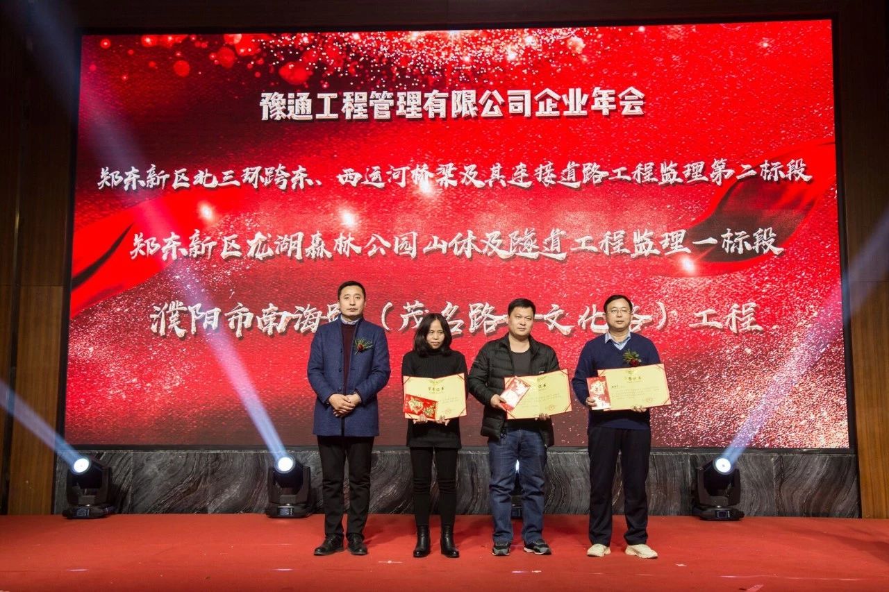 本次年會(huì)中,最讓人動(dòng)容的是2018年度表彰大會(huì)環(huán)節(jié)。公司共計(jì)頒發(fā)了“2018年度優(yōu)秀團(tuán)隊(duì)”獎(jiǎng)、“2018年度優(yōu)秀分公司”獎(jiǎng)、獲得“2018年度市政工程金杯”獎(jiǎng)項(xiàng)目、獲得“2018年度國家優(yōu)質(zhì)金杯”獎(jiǎng)項(xiàng)目、“2018年度項(xiàng)目?jī)?yōu)秀員工”獎(jiǎng)、“2018年度優(yōu)秀總監(jiān)”獎(jiǎng)、“2018年度公司優(yōu)秀員工”獎(jiǎng)七個(gè)獎(jiǎng)項(xiàng)以嘉獎(jiǎng)為公司發(fā)展默默付出的優(yōu)秀員工們。因?yàn)槊恳晃辉ネ胰说母冻?,才有了不斷前行、共?chuàng)輝煌的豫通管理!