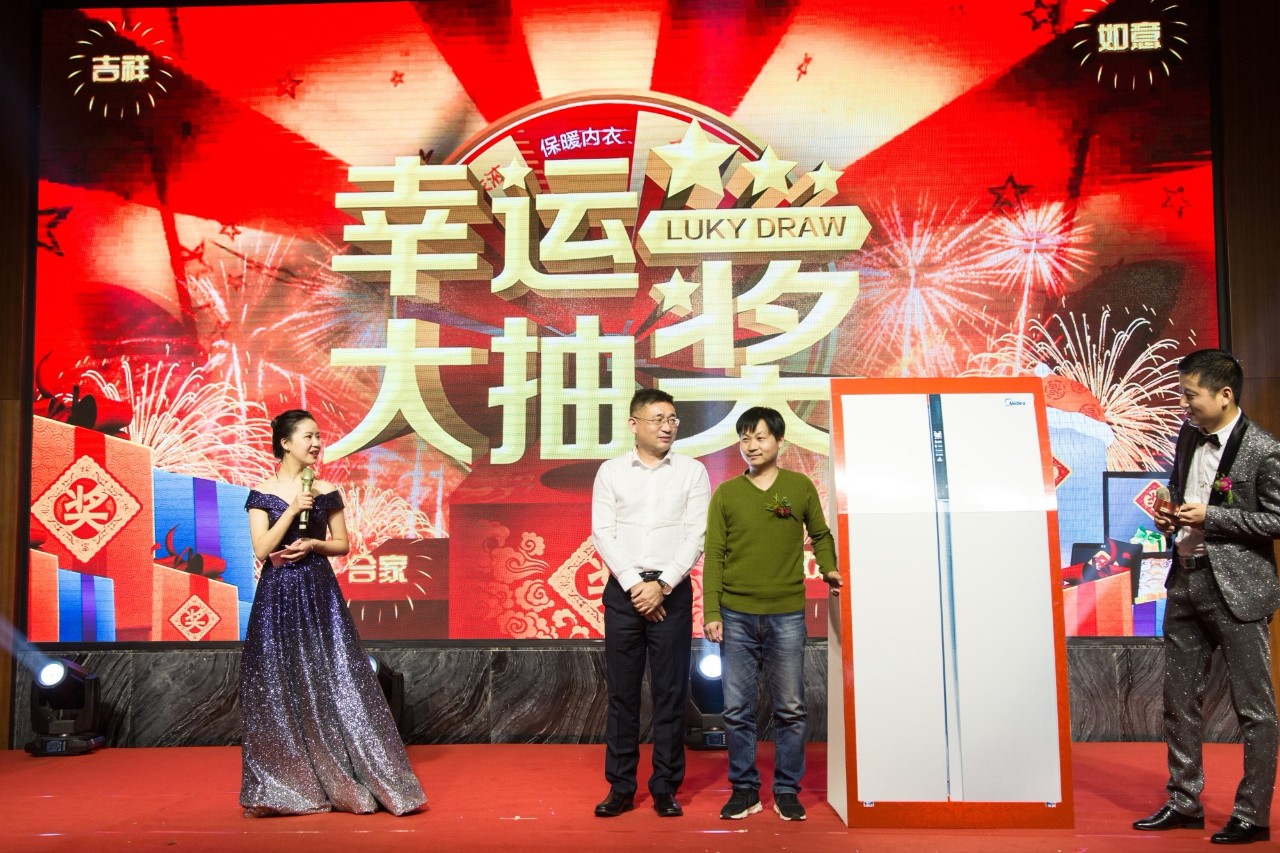 除了精彩的節(jié)目表演,大家最最最期待的應(yīng)該是驚喜刺激的抽獎(jiǎng)環(huán)節(jié)了,豐厚精美的獎(jiǎng)品,更是讓現(xiàn)場(chǎng)氣氛高潮迭進(jìn),年會(huì)上安排了三輪抽獎(jiǎng),抽到獎(jiǎng)品的同事們都是大家羨慕的幸運(yùn)兒。