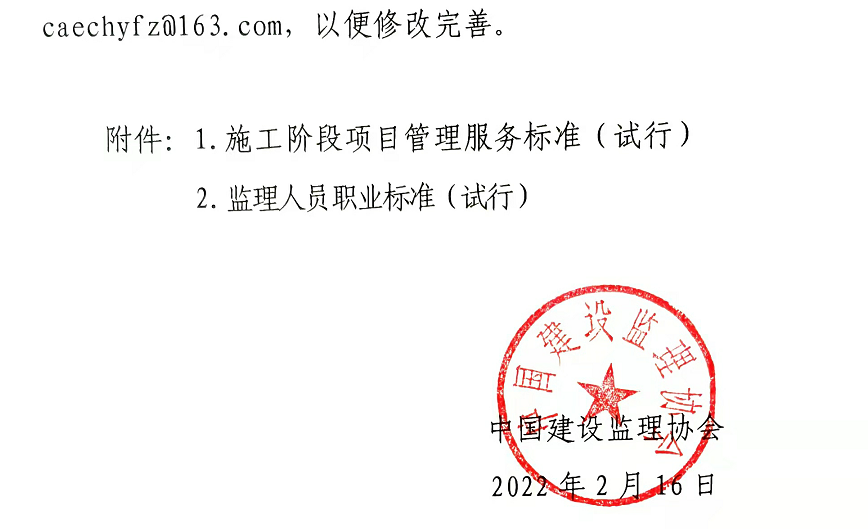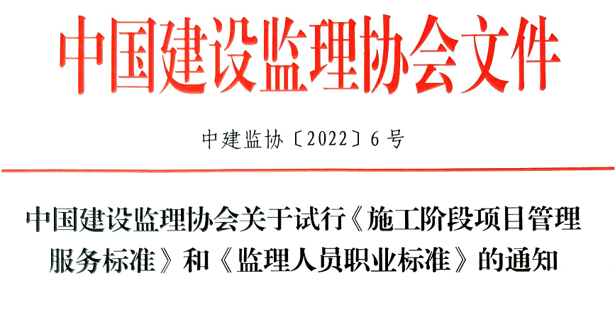 近日,中國(guó)建設(shè)監(jiān)理協(xié)會(huì)官網(wǎng)印發(fā)試行《施工階段項(xiàng)目管理服務(wù)標(biāo)準(zhǔn)》和《監(jiān)理人員職業(yè)標(biāo)準(zhǔn)》的通知。