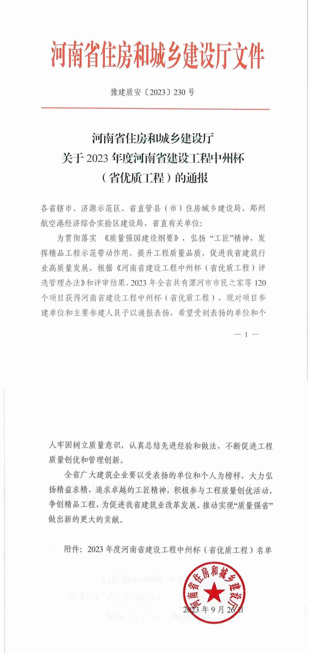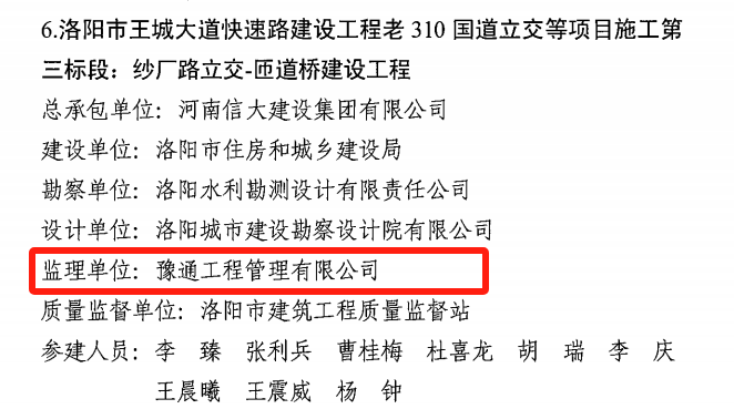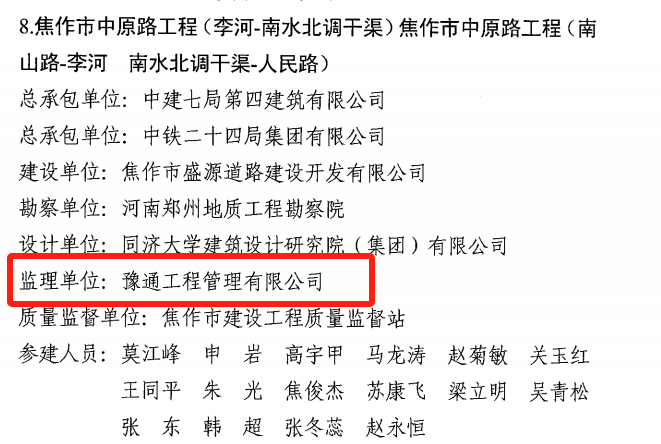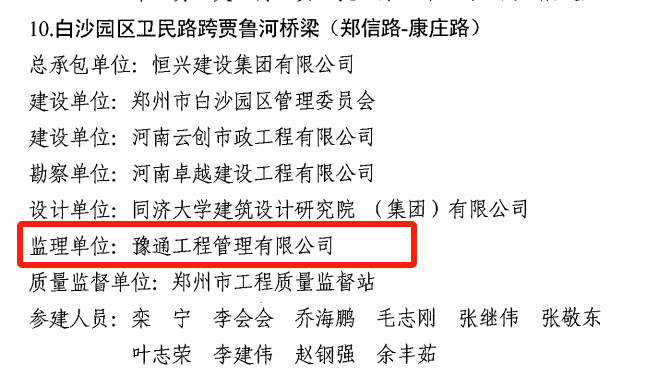 近日,河南省住房和城鄉(xiāng)建設(shè)廳公布了《關(guān)于2023年度河南省建設(shè)工程中州杯(省優(yōu)質(zhì)工程)的通報(bào)》,我公司監(jiān)理的4個(gè)項(xiàng)目——業(yè)務(wù)技術(shù)用房及警察博物館綜合樓、焦作市中原路工程(南山路—李河、南水北調(diào)干渠—人民路)項(xiàng)目、洛陽(yáng)市王城大道快速路建設(shè)工程老310國(guó)道立交等項(xiàng)目工程、白沙園區(qū)衛(wèi)民路跨賈魯河橋梁(鄭信路-康莊路)榜上有名。